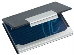 A great modern design aluminium card holder with leather look trim.