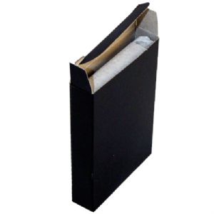 Wrapped in tissue paper and presented in a plain black tuck box.