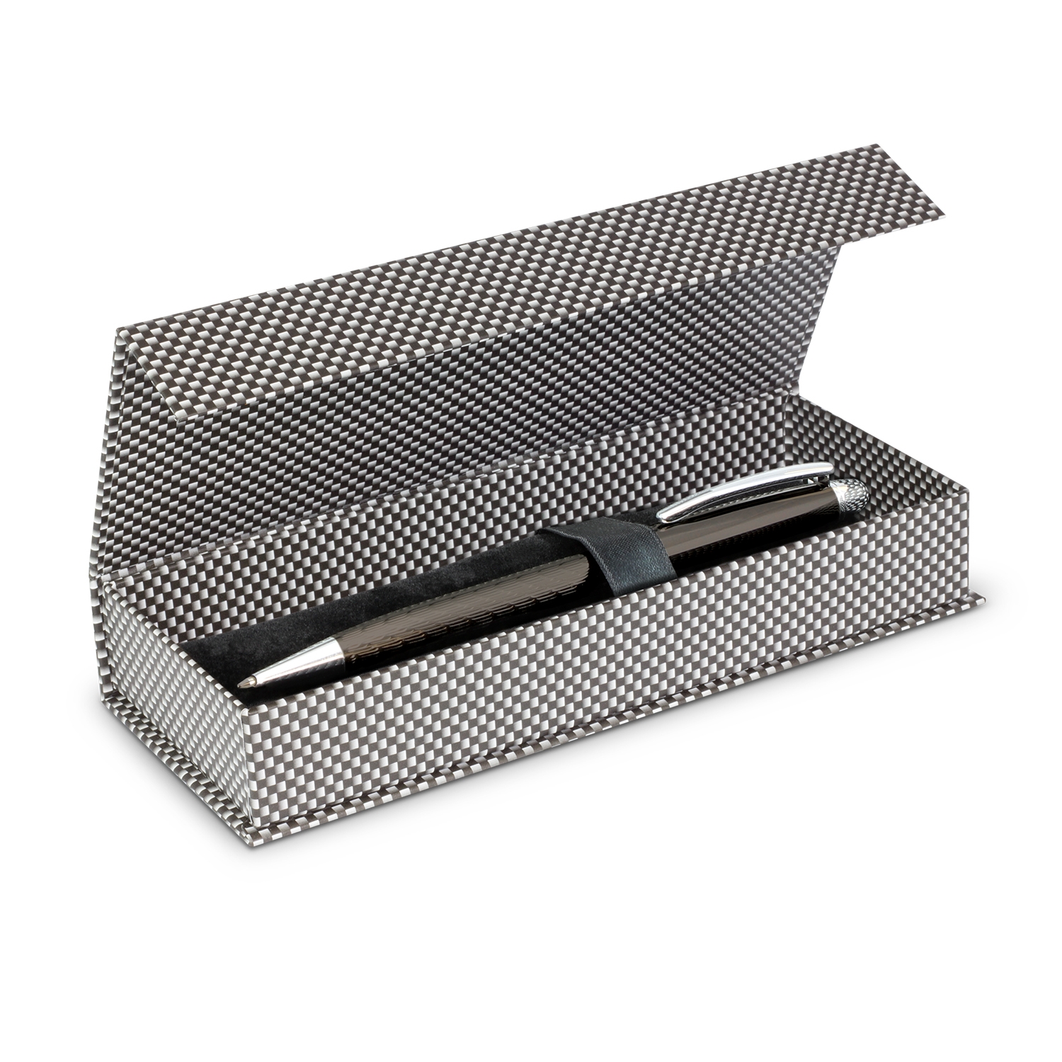 Superior twist action brass ball pen with a patterned lower barrel, a smart electroplated metal finish and shiny chrome accents. It has a black large volume refill with 4000 metres of German manufactured DOKUMENTAL ink and a tungsten carbide ball for improved writing quality. Monarch laser engraves to a natural etch and it can be presented in an optional velvet sleeve or a gift box.