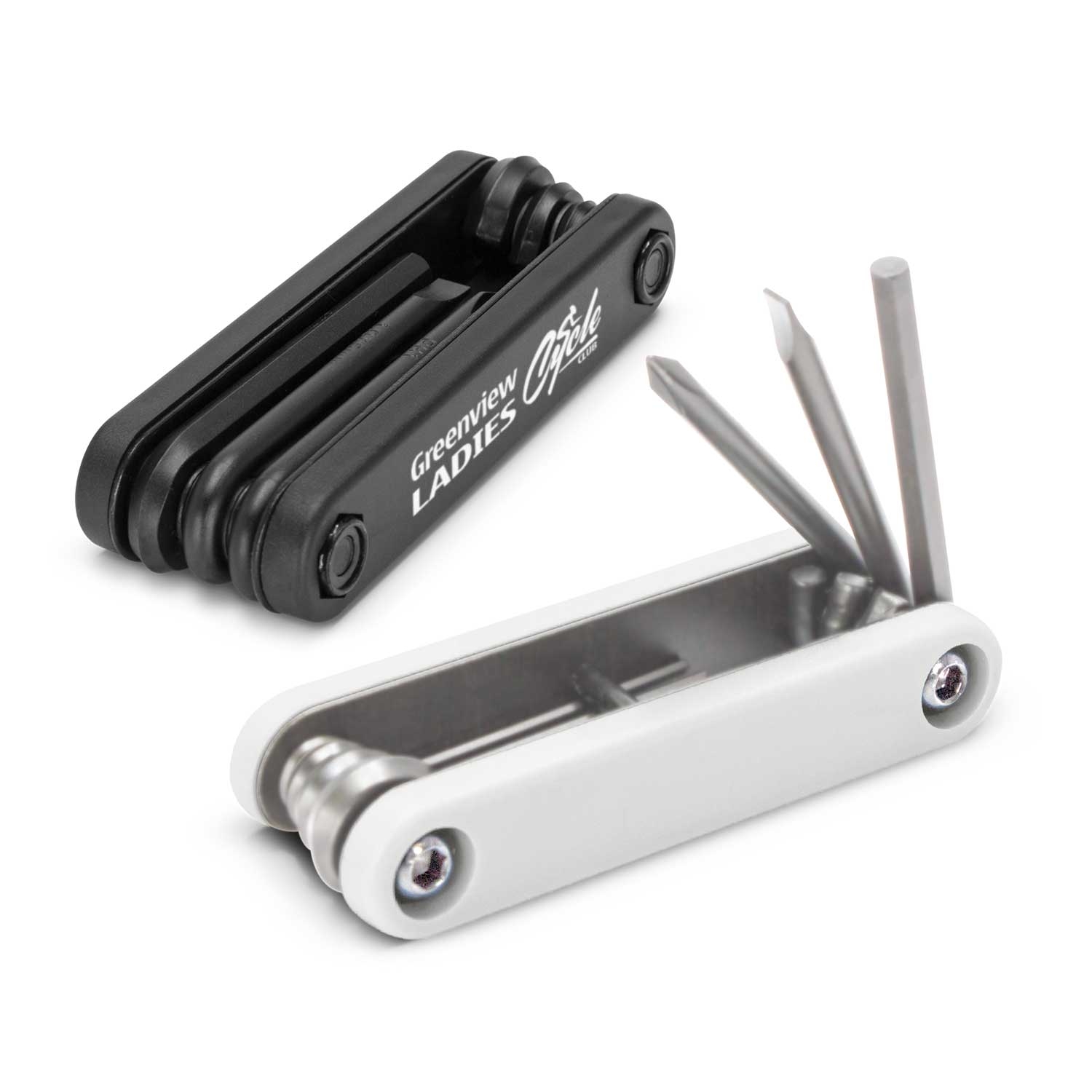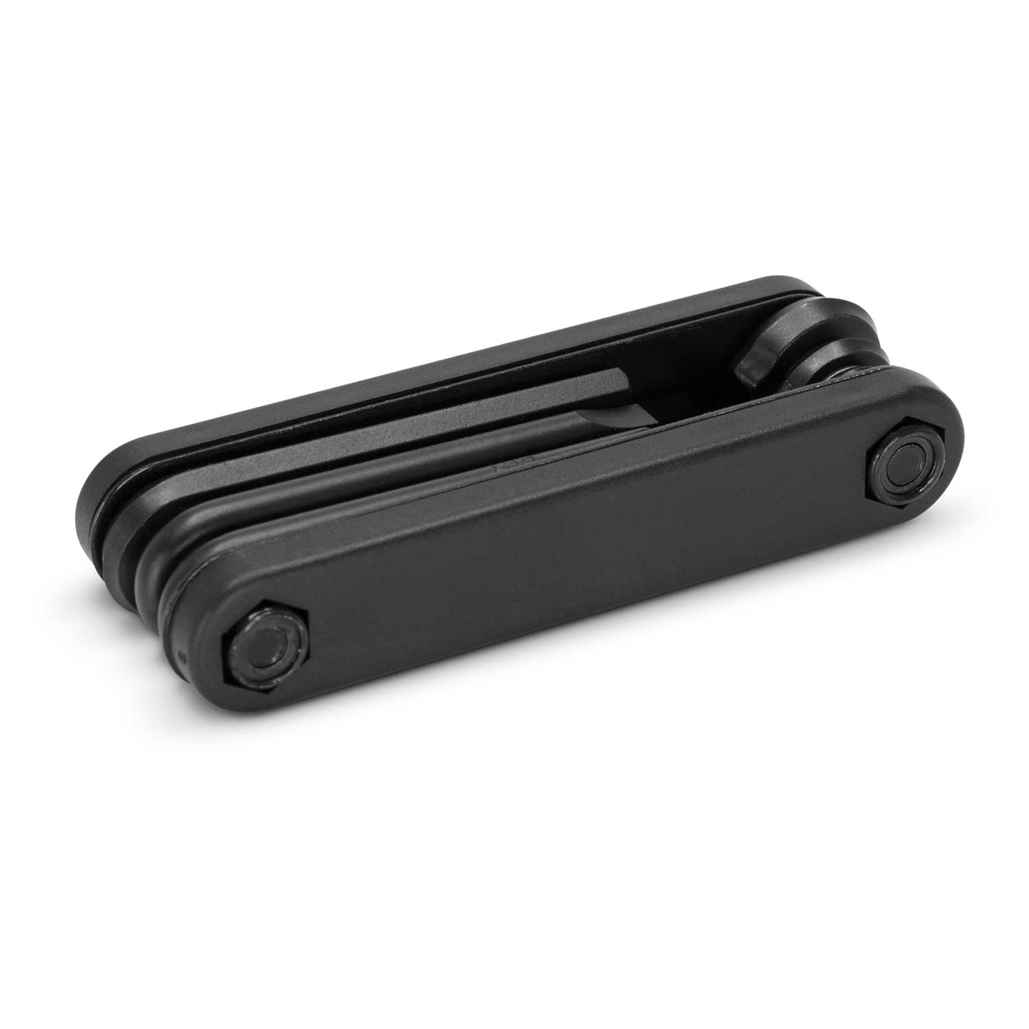 Smart seven piece set of black powder coated tools in a compact, pocket size multi-tool. It has five different size Allen keys, a Phillips screwdriver and a conventional screwdriver.