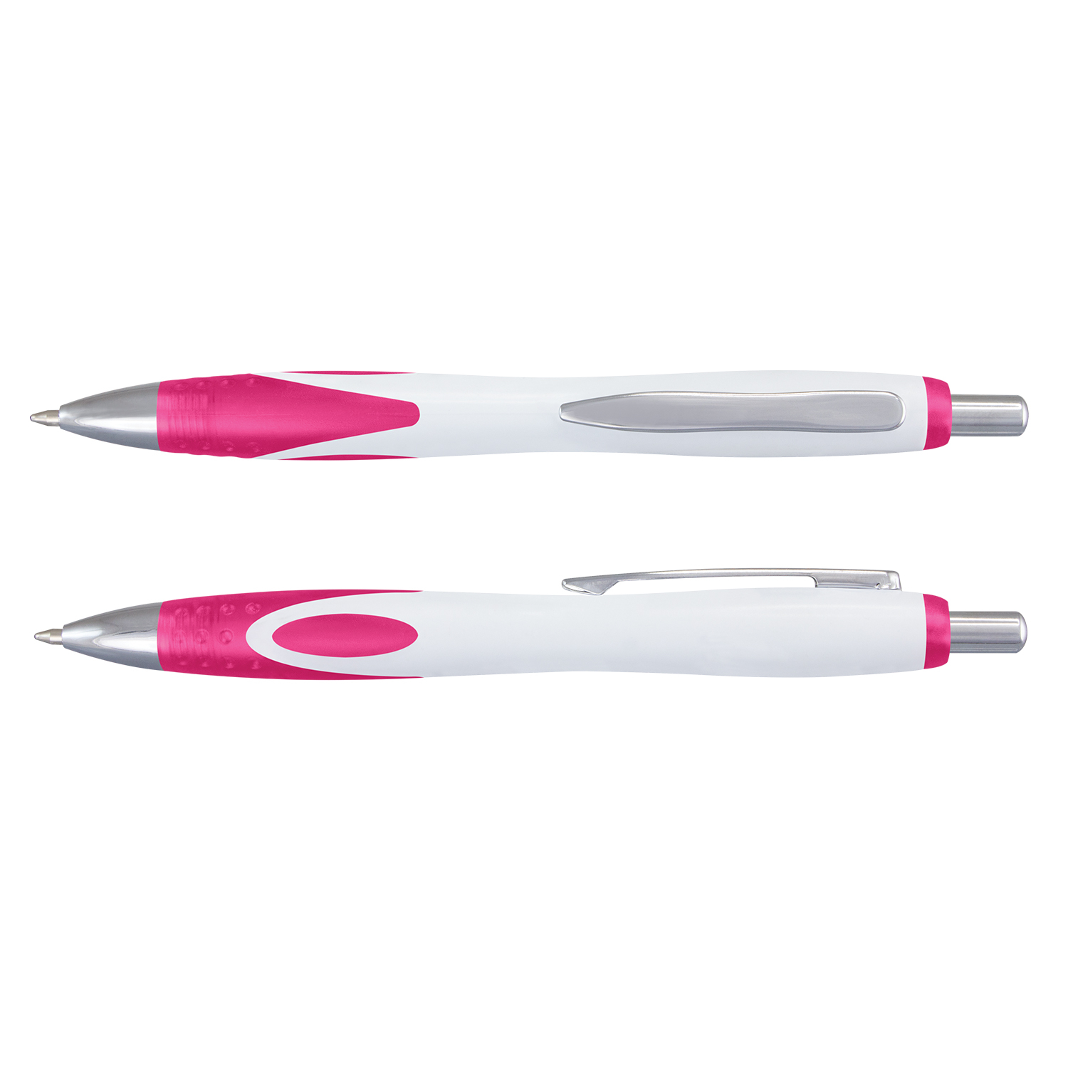 Retractable plastic and metal ball pen with a white barrel which features a unique frosted translucent double injected grip zone and shiny chrome trim. It has a blue TRENDS large volume refill with 1800 metres of German manufactured DOKUMENTAL ink and a tungsten carbide ball for improved writing quality. Black ink is available for an additional charge.