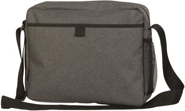 600D canvas-like polyester with PVC backing Front slip pocket fastened with Velcro