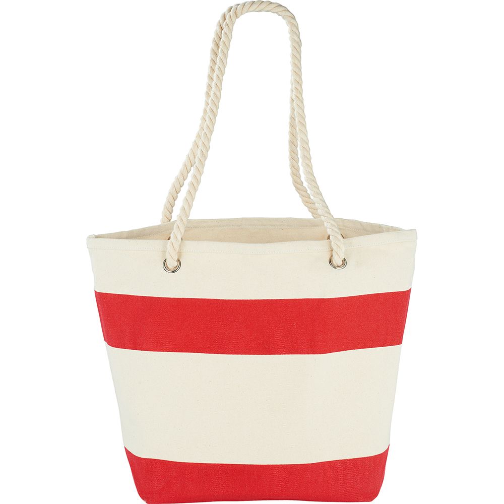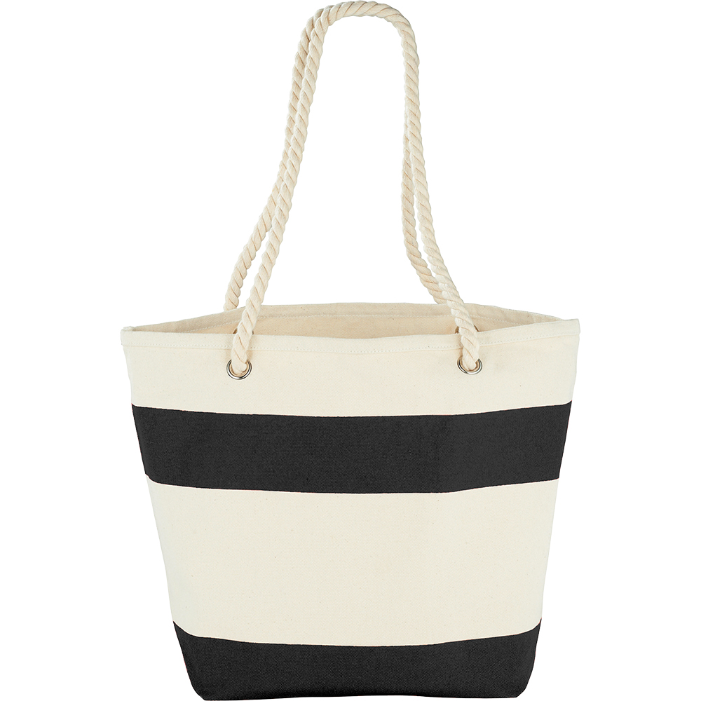 Show your stripes with this sturdy nautical tote, perfect for the beach or getting around on the weekend. Open main compartment. Available in 3 colours.